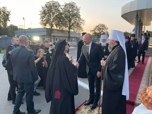 Ο Πρωθυπουργός της Ουκρανίας Εξοχ. κ. Denys Shmyhal, ο Μακαριώτατος Μητροπολίτης Κιέβου και πάσης Ουκρανίας κ. Επιφ;aνιος και πλήθος Πολιτειακών, Κυβερνητικών και εκκλησιαστικών παραγόντων υποδέχθηκαν πριν λίγο στο Διεθνές Αεροδρόμιο του Κιέβου τον Παναγιώτατο Οικουμενικό Πατριάρχη κ.κ. Βαρθολομαίο, ο οποίος επισκέπτεται επισήμως την χώρα προσκεκλημένος του Προέδρου της Ουκρανίας Εξοχ. κ. Volodymyr Zelenskyy και του Προκαθημένου της Ορθοδόξου Εκκλησίας της Ουκρανίας.