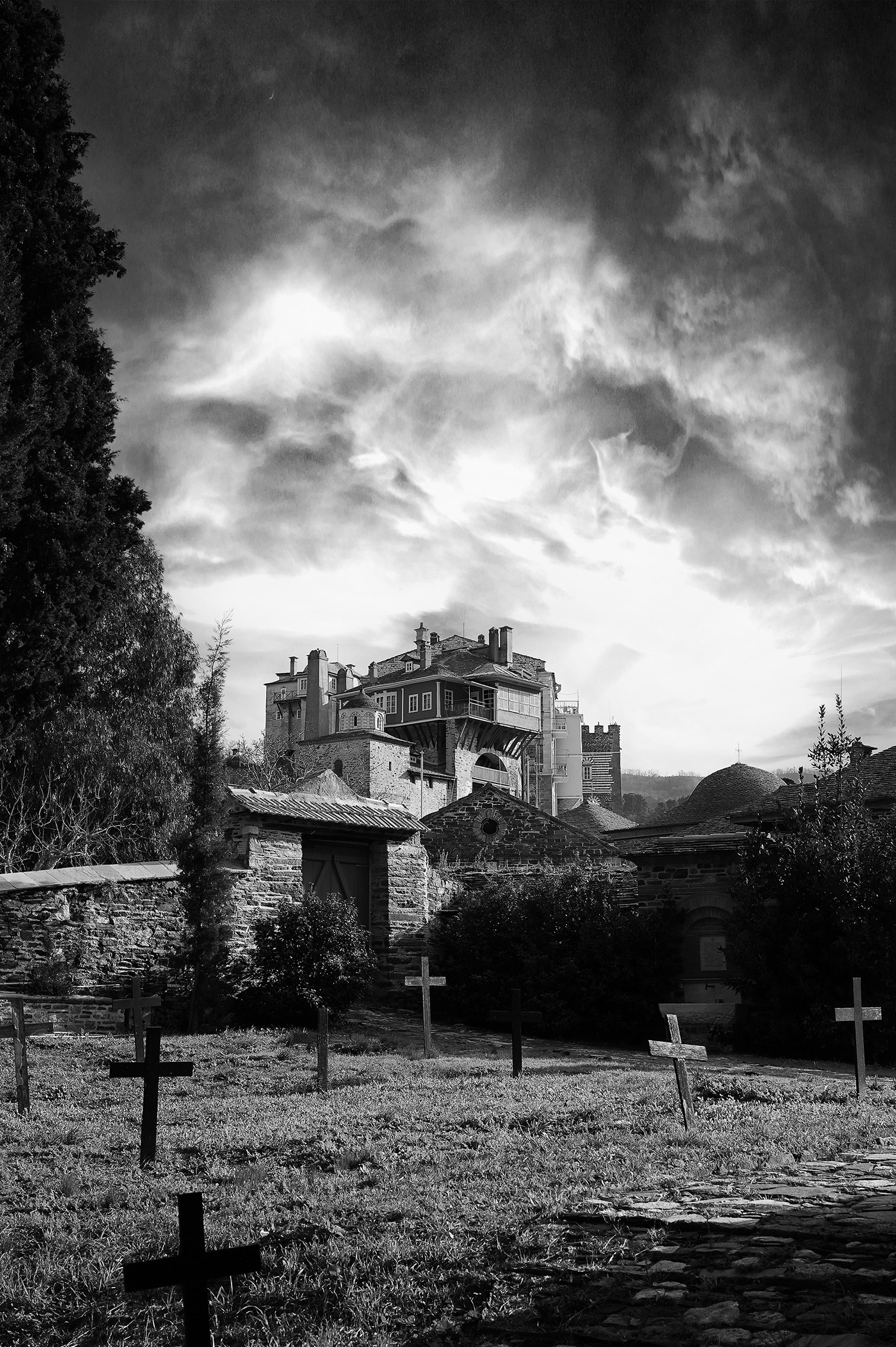 Η έκθεση παρουσιάζει ένα δίχρονο φωτογραφικό οδοιπορικό του Γιάννη Γιαννάτου στο Άγιον Όρος, το οποίο παραχωρήθηκε δωρεά από τον φωτογράφο στην Ιερά Μεγίστη Μονή Βατοπαιδίου, ως πολιτιστική παρακαταθήκη για τις επόμενες γενεές. Μέσα από ασπρόμαυρες εικόνες υψηλής αισθητικής, αποτυπώνονται η καθημερινότητα, τα διακονήματα, η λειτουργική ζωή και το πνευματικό βάθος της μοναστικής πολιτείας.