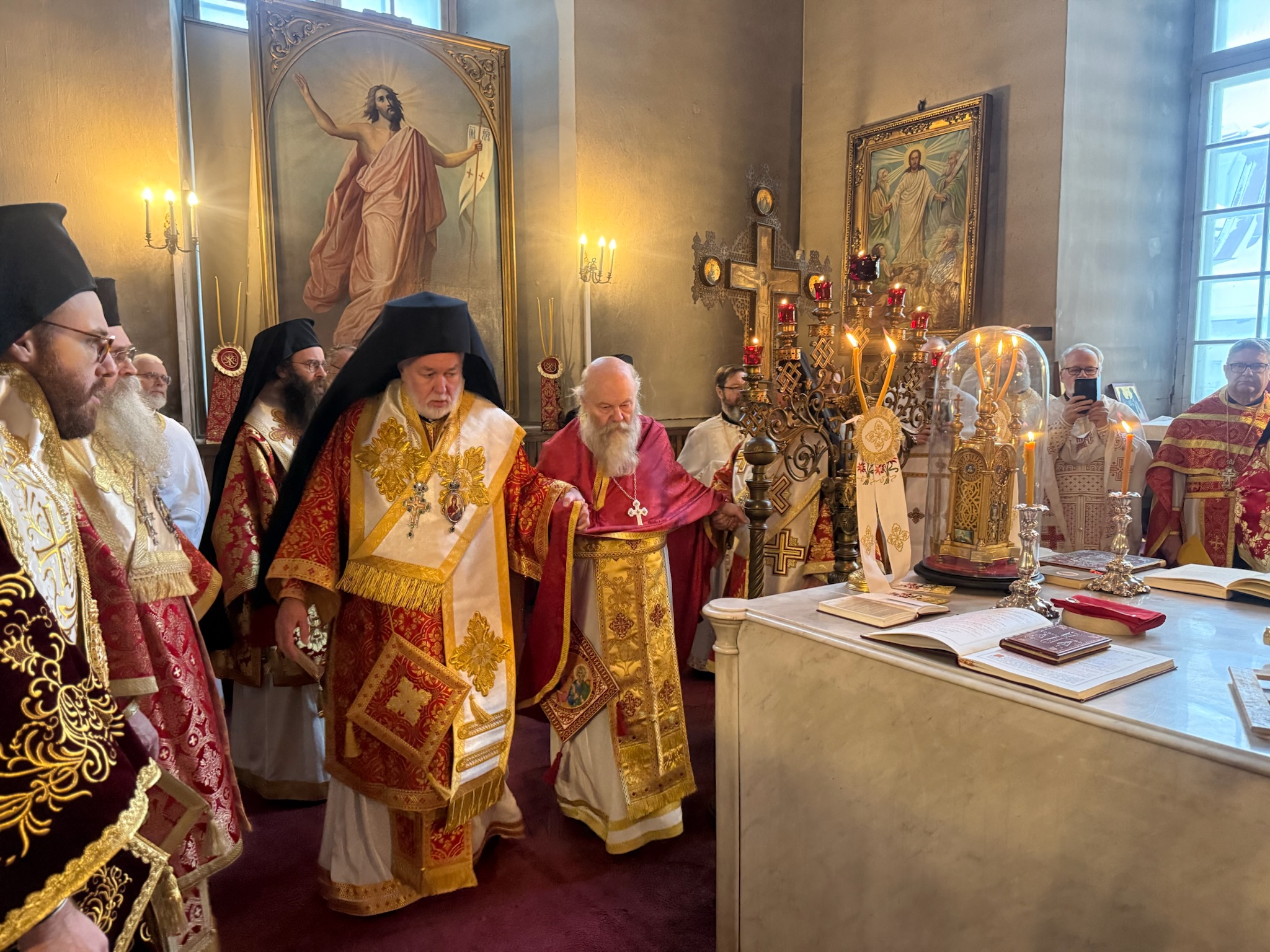 Συμμετείχαν, συγκεκριμένως, ο Σεβασμιώτατος Αρχιεπίσκοπος Ελσιγκίου και πάσης Φιλλανδίας κ. Ηλίας, ο Σεβασμιώτατος Μητροπολίτης Αγκύρας κ. Γρηγόριος ως εκπρόσωπος της Α.Θ.Π. του Οικουμενικού Πατριάρχου, ο Θεοφιλέστατος Επίσκοπος Μεσαορίας κ. Γρηγόριος ως εκπρόσωπος της Α.Μ. του Αρχιεπισκόπου Κύπρου, ο Σεβασμιώτατος Μητροπολίτης Βελγίου κ. Αθηναγόρας, ο Σεβασμιώτατος Μητροπολίτης Νεαπόλεως και Σταυρουπόλεως κ. Βαρνάβας, ο Σεβασμιώτατος Μητροπολίτης Περιστερίου κ. Γρηγόριος, ο Θεοφιλέστατος Επίσκοπος Pärnu και Saare κ. Αλέξανδρος, ο Θεοφιλέστατος Επίσκοπος Αλμωπίας κ. Στέφανος, ο Θεοφιλέστατος Επίσκοπος Χααψάλου κ. Δαμασκηνός, καθώς και πλειάδα κληρικών από την Εσθονία και την Φιλλανδία.