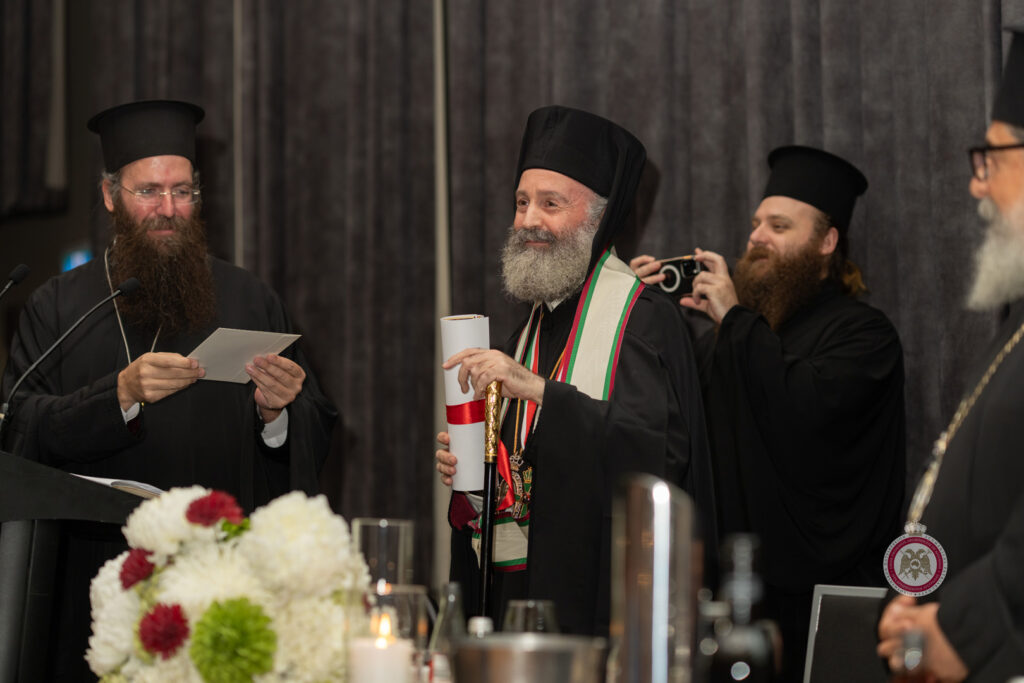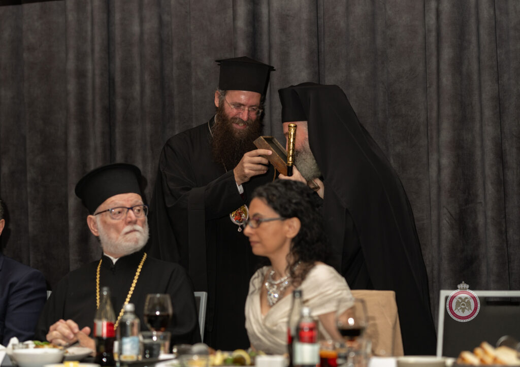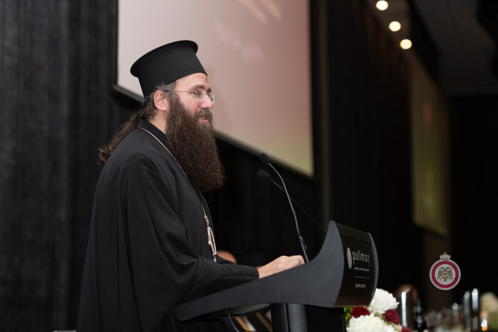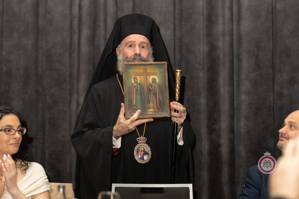 Σε μία από τις πλέον συγκινητικές στιγμές της βραδιάς, ο Θεοφ. Επίσκοπος Τολιάρας και Νοτίου Μαδαγασκάρης κ. Πρόδρομος απηύθυνε θερμό αδελφικό χαιρετισμό προς τον Σεβ. κ. Μακάριο, ενώ παρουσίασε, με τη συνδρομή οπτικοακουστικού υλικού, το θεάρεστο ιεραποστολικό έργο που επιτελείται στην επαρχία του με την καθοριστική υποστήριξη της Ορθοδόξου εν Αυστραλία Εκκλησίας. Ως ένδειξη ευγνωμοσύνης, ο Θεοφιλέστατος απένειμε στον Αρχιεπίσκοπο το Ανώτατο Παράσημο της Ιεράς Επισκοπής Τολιάρας και Ν. Μαδαγασκάρης, ενώ του προσέφερε και μία εικόνα των Αγίων ενδόξων ισαποστόλων Κωνσταντίνου και Ελένης.