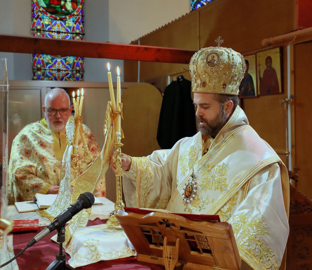Τον Θεοφιλέστατο, με αισθήματα πηγαίας χαράς και αγάπης, υπεδέχθη στα προπύλαια του Ναού ο ιερατικώς Προϊστάμενος της Κοινότητος, π. Δαυίδ Σόμαλης. Στη Θεία Ευχαριστία, καθώς και στο εορταστικό γεύμα που ακολούθησε, παρέστησαν η Αντιδήμαρχος της πόλεως του Λούτον, εκπρόσωποι των τοπικών αρχών και άλλες σημαίνουσες προσωπικότητες της περιοχής.