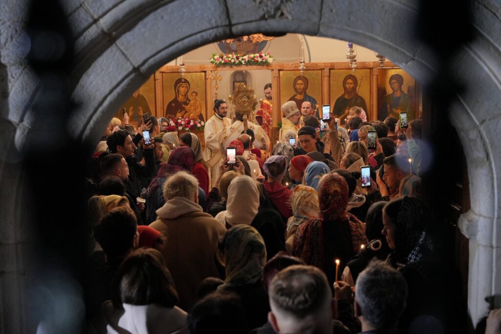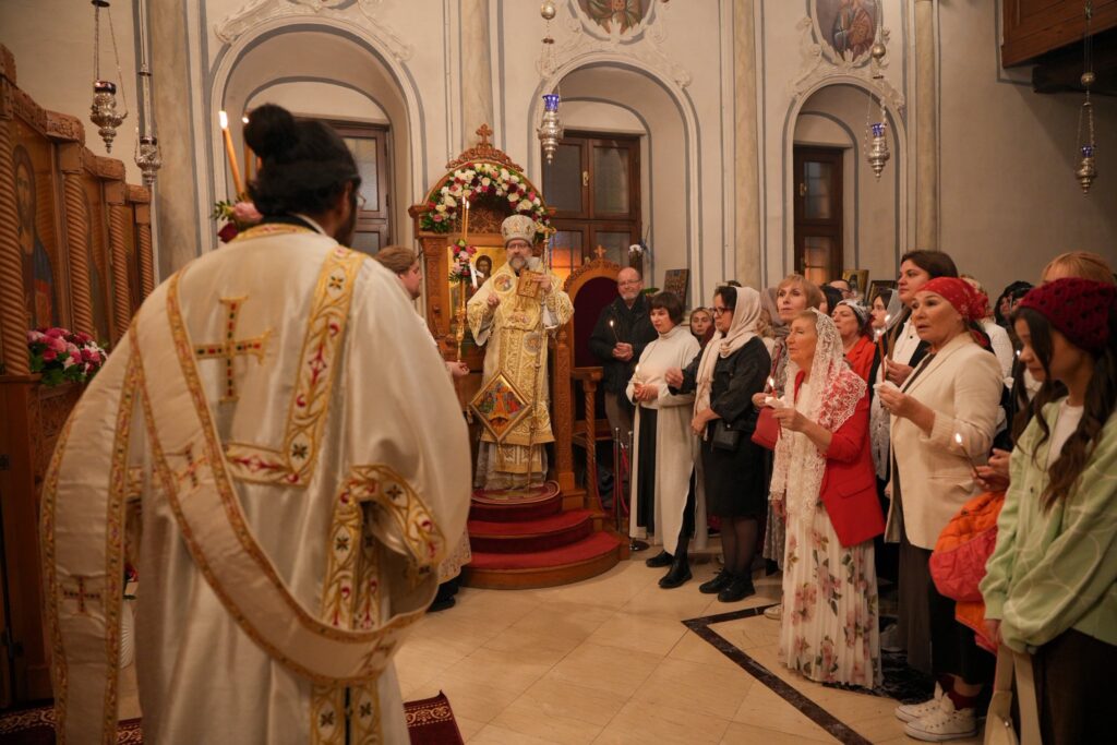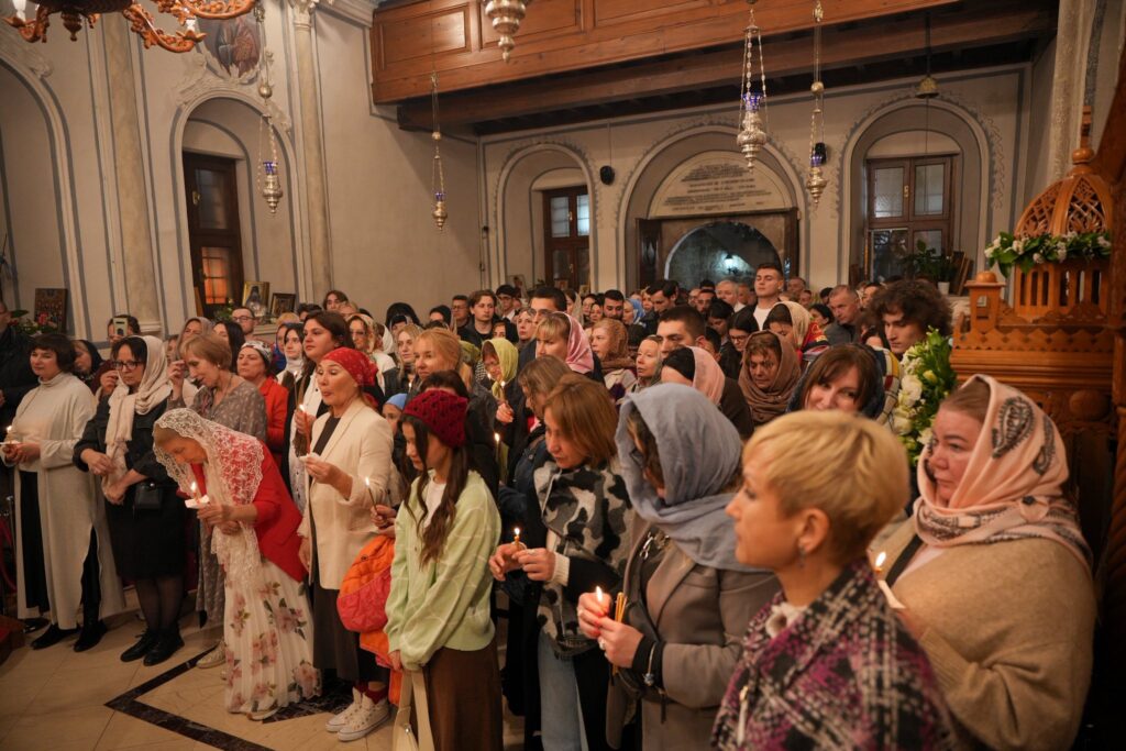 Πλήθος ορθοδόξων κατέκλυσε τον Ιερό Ναό με σκοπό να συμμετάσχει στην Αναστάσιμη Θεία Λειτουργία.